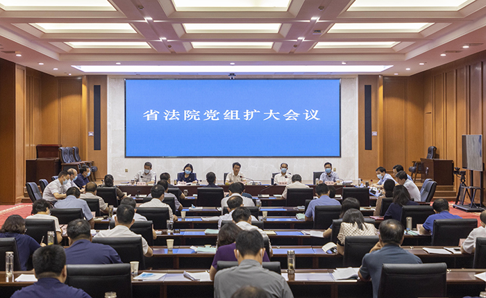 7月18日上午,省法院召开党组扩大会议,分析讲评上半年院机关重点工作,部署推进下半年工作。省法院党组书记、院长胡道才主持会议并讲话。