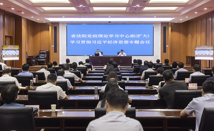 7月25日上午,省法院召开党组理论学习中心组(扩大)学习贯彻习近平经济思想专题会议。省法院党组书记、院长胡道才出席会议,中国人民银行郑州中心支行党委委员、副行长翟向祎同志就经济金融形势进行专题辅导授课,省法院党组成员、政治部主任陈兆法主持会议。