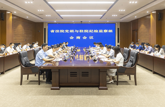 8月17日上午,省法院党组与省纪委监委驻省法院纪检监察组召开全面从严管党治警专题会商会议,省纪委常委李成宽出席会议,省法院党组书记、院长胡道才主持会议并讲话。