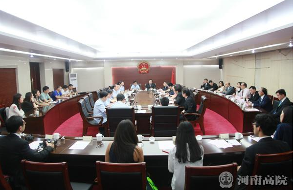 8月17日,香港中小型律师行协会代表团到河南省高级人民法院参观访问,省高院院长张立勇与代表团一行进行了座谈交流。 张立勇院长对香港中小型律师行协会代表团的来访表示热烈欢迎。张立勇指出,河南法院高度重视律师工作,下大力气解决影响律师执业中存在的突出问题。同时,重视加强法官与律师的良性交流互动,通过建立投诉查处机制、相互监督机制、业务交流机制、联席会议制度等多种长效机制,有效促进法官与律师良性互动。 中央人民政府驻香港联络办公室法律部部长王振民和香港中小型律师行协会创会会长陈曼琪介绍了香港律师行业发展的基本概况。双方就发挥律师在诉讼服务中心参与调解作用、刑事案件中保障律师辩护权、涉港澳民商事案件审理情况、法官与律师良性互动关系工作机制的建立等法律问题进行了广泛而深入的交流,并期待豫港两地的司法交流合作为豫港合作发展提供更大的契机。 省高院常务副院长田立文介绍了河南省情及法院工作情况,审委会专职委员、院长助理王韶华、审委会专职委员郭保振和有关部门负责人参加座谈。紫荆杂志社社长、总编辑杨勇,省政府港澳事务办有关负责人等随团到访并参加会见。 代表团一行参观了省高院信息集控中心,观看了河南法院数据库建设、司法公开三大平台建设及演示 。