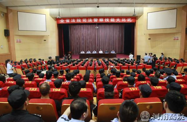为进一步提高司法警察素质,强化技能,增强司法警察押解、看管、值庭以及处理突发事件的能力。8月22日至24日,河南全省法院司法警察技能大比武活动在新乡举行。河南省高级人民法院党组副书记、副院长刘晓云出席开幕式并宣布比武开始。 刘晓云强调,要通过这次活动,进一步统一思想、提高认识,奋力拼搏、争先创优,把比武活动的成果转化为全面促进全省法院司法警察教育训练工作的强大动力,转化为推动全省法院司法警务工作制度化、规范化发展的具体行动,把我省法院司法警察队伍打造成一支“拉得出、冲得上、打得赢”的钢铁队伍,努力使河南法院司法警务工作再创佳绩、再创辉煌! 近年来,河南全省法院司法警察始终坚持政治建警、从严治警、素质强警,紧紧围绕法院中心工作,忠实履职,争创一流,出色完成了各项警务保障任务,用热血和忠诚捍卫了公平与正义,维护了法律尊严和司法权威,为保障全省法院各项工作顺利进行作出了贡献。这次大比武活动,是加强司法警察队伍“三化”建设,培养训练骨干,培育战斗精神的一项重要举措,是对全省法院司法警务保障水平、执法规范化水平的一次大检阅,是对全省法院司法警察队伍过硬本领和精神风貌的一次大检阅。 本次比武汇聚了全省法院18个司法警察支队的270名警务人员,通过理论、擒敌、手枪射击、全装跑、安全检查等9个科目比赛,除平顶山、洛阳、郑州、三个代表队分获团体总分前三名之外,另有31名同志取得了各单项比赛的前三名。 新乡市委政法委书记刘森、新乡中院党组书记、院长袁荷刚出席开幕式,省高院法警总队总队长孟相军主持开幕式。