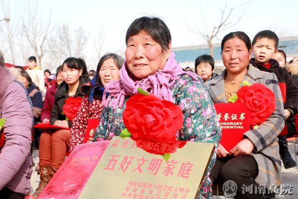 “ 三八”妇女节来临之际, 3月3日,河南省高级人民法院机关党委、工会、妇委会到帮扶点民权县野岗镇孟庄村开展表彰“五好文明家庭” 以及“好婆婆”、“好媳妇”、“好妯娌”活动,并为村里群众带来了慰问演出节目,受到了当地党委、政府以及广大人民群众的一致好评。