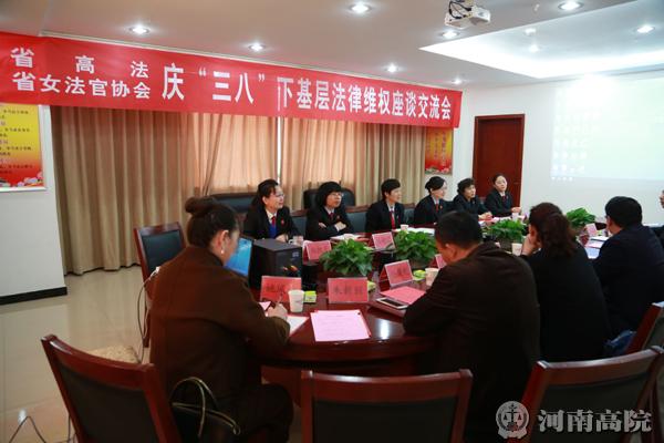 为庆祝“三八”国际劳动妇女节及《中华人民共和国反家庭暴力法》施行一周年,提升广大妇女的维权意识和维权能力,反对家庭暴力,促进家庭和谐和社会稳定,2017年3月7日上午,河南省高级人民法院、河南省女法官协会的女法官代表深入郑州市金水区未来路街道办事处走访调研,与郑州市金水区妇联、人大及未来路街道办事处的基层干部和群众一起召开“庆三八,下基层,法律维权座谈交流会”,就家事审判改革工作、贯彻落实反家暴法、推行人身保护令及人民群众关注的法律问题进行交流研讨。