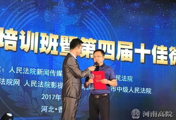 7月5日,由最高人民法院政治部、最高人民法院新闻局、最高人民法院执行局、人民法院新闻传媒总社、中华全国法制新闻协会、中央电视台《今日说法》栏目联合主办,中国法院网承办的“全国法院第四届十佳微电影”评选活动在河北香河举办颁奖式。
