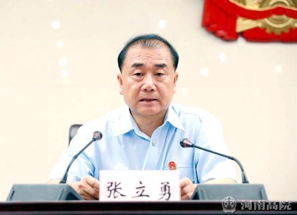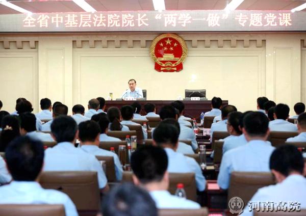 7月6日,河南省高级人民法院党组书记、院长张立勇给全省中基层法院院长上专题党课。省高院党组成员、纪检组长马锋军主持。