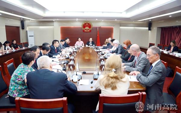 8月25日,德国巴登-符腾堡州(斯图加特)高等法院院长弗兰茨•司坦乐带领的德国巴登-符腾堡州法官代表团来到河南省高级人民法院进行访问。河南高院院长张立勇会见了代表团一行。河南高院常务副院长田立文,副院长刘晓云,审委会专职委员、院长助理王韶华,审委会专职委员郭保振等参加会见。 会见中,张立勇院长向德国巴登-符腾堡州法官代表团介绍了河南省和河南法院的基本情况,回顾了河南高院与德国巴登-符腾堡州斯图加特高等法院在“中德法律合作项目”框架下开展的一系列交流合作活动,强调要以此为契机,进一步传承友谊,深化互信,在司法领域内进行更加深入的交流合作,以达到互相借鉴、共同发展的目的。 随后,双方就“法官职业保障”等议题进行了座谈和交流。 据了解,代表团还将到郑州市中级人民法院、开封市中级人民法院进行访问。