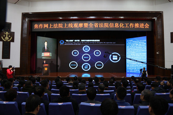 郭保振指出,此次会议作为全省首次实行无纸化工作会议,意义重大。党的十九大提出了“建设科技强国、网络强国、数字中国和智慧社会”的宏伟目标,全国法院第四次、全省法院第二次信息化工作会议对智慧法院建设制定了时间表、绘制了路线图。一分部署,九分落实。全省法院要以时不我待、只争朝夕的精神状态,撸起袖子加油干,早日实现“智慧法院”建设任务。近年来,焦作中院高度重视信息化建设和应用工作,李玉杰院长等领导同志积极推动、带头应用,以实际行动示范和带动全体干警网上办公办案,给全省法院带了个好头。截至11月13日,焦作中院领导已网上办文1490件,居全省各级法院之首。焦作中院以人民群众对司法工作的需求为导向,结合焦作法院审判工作实际,深度开发应用系统,加强应用系统间的融合,建成了焦作“网上法院”,填补了全省法院“电子诉讼”的空白,是全省法院信息化应用工作的典范,为推进全省“智慧法院”建设提供了可复制、可推广的宝贵经验。全省法院要对标“智慧法院”,全面完成全业务网上办理,构建网络化法院;全流程依法公开,构建阳光化法院;全方位智能服务,构建智能化法院的“三全三化”目标要求。