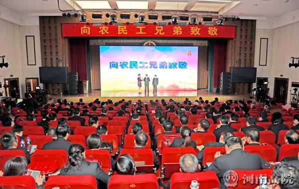 12月22日,河南省高级人民法院举办以“向农民工致敬”为主题的全省法院八年为农民工讨薪总结会,河南省人大常委会副主任段喜中,河南省政协副主席张广智,河南省高级人民法院院长张立勇,最高人民法院相关部门、全国总工会、人力资源和社会保障的负责同志出席。全国人大代表买世蕊讲话。 据了解,从2010年3月以来,河南全省法院连续八年先后九次开展拖欠农民工工资案件集中办理活动,并将这项工作常态化,规范化,制度化。8年来共审结77686件农民工讨薪案件,为151390位农民工讨回欠薪59.51亿元。 河南是农业大省,农民大省,农民工大省,农村劳动力转移就业2900多万人,其中省内就业1700多万人,务工收入是千千万万个农村家庭的主要收入来源,保障农民工工资支付,关系着千千万万个农民家庭的切身利益,为此,河南的全省法院和法官,立足河南的省情和实际,持续八年为农民工讨薪,并且从2015年开始,将保护农村三留守人员合法权益与农民工讨薪活动一同安排部署,实现了对农民工及其家庭的全方位保护,这项工作受到人民群众和社会各界的高度评价,被称为农民工讨薪的“河南模式”,最高人民法院、河南省委、省政府主要领导专门作出批示肯定。 河南各地法院普遍成立了专门审判庭集中办理农民工讨薪案件。在办理案件中,各地法院开通绿色通道,优先立案、优先开庭、优先合议、优先调解、优先下判,快立快审快调快判,并且开展诉前调解,小额速裁,先行判决,先行调解,先予执行,大案难案院庭长带头办,用最短的时间让农民工实现权益。河南全省法院坚持让法官多走路,让群众少跑腿,积极推行网上立案,电话预约立案,上门立案,巡回办案等,最大限度方便农民工诉讼,减轻群众诉累。各地法院加大司法救助力度,对经济困难的一律免收诉讼费,执行费,坚决让有理无钱的农民工打得起官司,打得赢官司。各地法院相继组织农民工工资执行款集中发放活动,法院院长都主动参加并将工资送到农民工手中,让农民工在寒冷的冬天感受到司法的温暖,唤起全社会对农民工的关注和关爱。 河南全省法院以拖欠农民工工资等涉农涉民生案件为重点,相继开展了春雷行动,夏季雷霆,秋季风暴,冬季攻坚等专项活动,共清理案件7600余件,判处拘执犯罪分子4015人。各地法院加大联合惩戒力度,凡是欠薪不还的,一律纳入全国法院失信被执行人名单,并在市场准入,融资投标,高消费,出入境,乘坐飞机,高铁,担任公职,评先晋级等方面进行全方位的限制,使其处处受限,寸步难行。同时,严打拒执老赖,对那些躲着藏着,有钱不还的老赖,该拘留的拘留,该罚款的罚款,对拒不执行判决的,主动与公安检察机关协调沟通,果断动用刑罚,硬起手腕,并坚决支持申请执行人依法提起刑事自诉公诉自诉,确保打击到位。 张立勇院长讲话强调,以人民为中心,是习近平新时代中国特色社会主义思想的核心和灵魂,以人民为中心,就是必须以最广大人民的根本利益,为一切工作的最高标准,始终把人民利益摆在至高无上的地位,永远把人民对美好生活的向往作为奋斗目标,为农民工讨薪工作仍然任重道远,全省法院将继续努力,直到有一天,河南的农民工兄弟讨薪不再难。 全国人大代表胡葆森、汤玉祥、赵明恩、薛景霞、吴元全、李连成、崔小田、熊维政、徐德全、徐晓,省人大代表王云龙、王 玲、孙玉民、胡逸云、董振杰、刘庭杰、李玉坤、朱太忠、朱金喜、张建、徐贵丽、张怀平、原连庄、路 文、胡玉敏 、姚俊才、胡卫民、李源、刘光中、师万青、 张建华、金美珍 、黄久生、胡镇、张玮、董华伟、许爱华、李秀兰,省政协委员姚红海、王保安、程礼来、丁云霄、王若愚、付春旺、杨明参加。