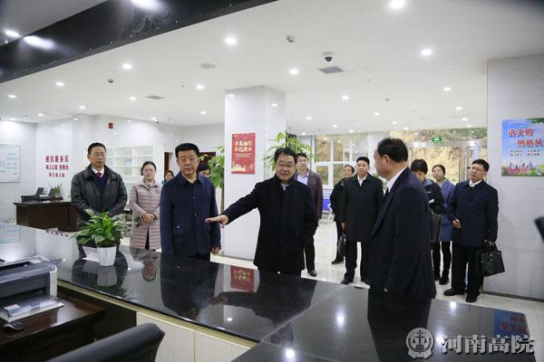 12月14—15日,省法院党组书记、院长胡道才到信阳市中级人民法院、新县人民法院及新县浒湾人民法庭,就涉军维权、立案信访、审判管理、智慧法院建设等工作进行调研,并在中院召开座谈会,听取中院班子成员、相关部门负责同志对省法院工作的意见和建议。