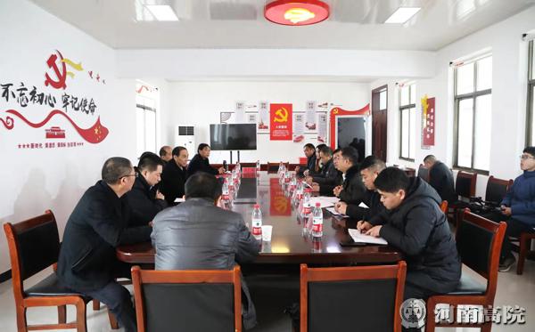 郭保振副院长代表省法院党组向驻地政府和法院对省法院驻村工作的关心和支持表示衷心感谢并向他们提前拜年,代表省法院党组向孟庄村2406名群众拜年并祝他们家庭和睦、身体健康、生活幸福。省法院和民权县拥有深厚的友谊,省法院党支部和孟庄村党支部开展过多次“手拉手”活动,已经结为“亲戚”,以后要多沟通,互相学习。