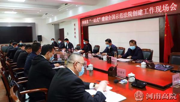 为贯彻落实最高法院工作部署和胡道才院长要求,动员部署我省“一站式”建设全国示范法院创建工作,4月14日,省法院在兰考召开河南省“一站式”建设全国示范法院创建工作现场会。省法院宋海萍副院长参加会议并讲话,立案庭张云龙庭长主持会议。开封中院院长谷昌豪、洛阳中院院长曲海滨以及兰考县、巩义市、汝州市等法院院长参加会议。