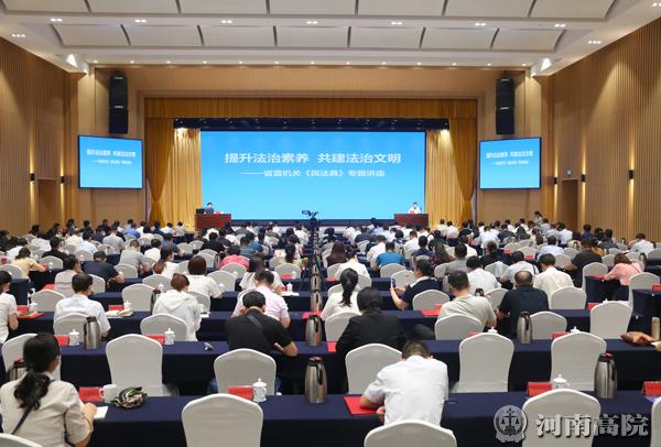 为深入贯彻落实习近平总书记在中央政治局第二十次集体学习上的讲话精神,持续强化广大干部职工对社会主义核心价值观的认知认同,提升运用《民法典》维护人民权益、化解矛盾纠纷的能力,深入推进省直机关精神文明建设。7月15日上午,省法院文明办联合省直文明办在郑州举办了省直机关“提升法治素养 共建法治文明”《民法典》专题讲座。此次讲座由省法院民事审判第一庭庭长、二级高级法官刘天华主讲。省直和中央驻豫各单位精神文明专职干部、省直部分单位机关党委专职副书记及省委直属工委部分党员干部约200余人参加。