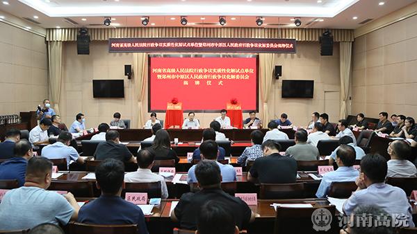为创新实践新时代“枫桥经验”,推进行政争议实质性化解,保护人民群众合法权益,助力诉源治理落实落地,河南省高级人民法院确定郑州市中原区人民政府、郑州市中原区人民法院作为“府院联动”实质性化解行政争议的试点单位。9月15日下午,河南省高级人民法院行政争议实质性化解试点单位暨郑州市中原区人民政府行政争议化解委员会揭牌仪式在中原区政府举行。省法院党组成员、副院长王韶华,省法院行政审判庭庭长李继红,郑州中院党组书记、院长李志增,审委会专职委员王焰斌及行政审判一庭庭长何信丽、行政审判二庭负责人赵军胜,中原区委书记乔耸,中原区委副书记、区长李晓雷,中原区法院党组书记、院长赵洪印,中原区委政法委常务副书记,区政府各部门行政正职,各街道党政正职,区法院相关部门负责人参加。