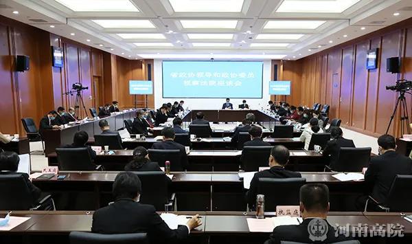 周春艳副主席在主持座谈时指出,推动全省营商环境改善,法院责任重大、任务艰巨,希望全省法院以此次视察调研为契机,认真贯彻落实省委全面依法治省工作部署,主动服务全省经济社会发展大局,持续提高法治化营商环境评价指标,积极回应人民群众对美好生活的向往、对司法公正的期盼;希望住豫全国政协委员、省政协委员一如既往关心支持、监督帮助全省法院工作发展进步;省政协也将扎实有效履行职能,紧紧围绕法院工作中的重大问题和群众关心的热点难点问题,深入调查研究,积极建言献策,更好凝聚推进法治河南建设的共识与合力,把全面建设现代化河南的宏伟事业推向前进。