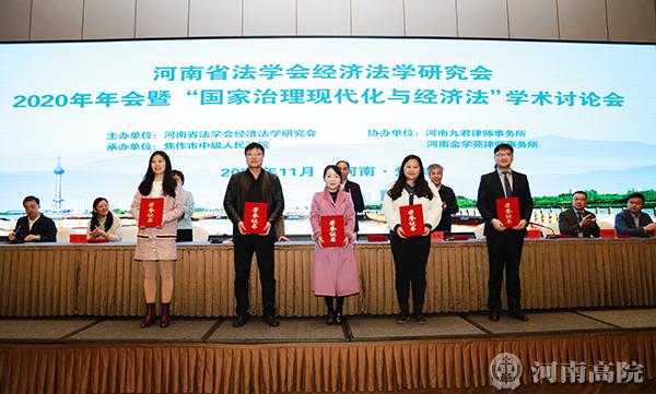 11月21日,河南省法学会经济法学研究会2020年年会暨“国家治理现代化与经济法”学术讨论会在焦作召开。省法学会经济法学研究会180多名会员代表与会研讨。省法学会副会长、河南财经政法大学党委副书记华小鹏,焦作市委常委、政法委书记胡小平,应邀出席开幕式并致辞。开幕式由研究会常务副会长、河南大学法学院教授娄丙录主持。