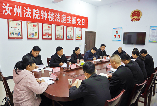 12月28日上午,省法院党组成员、副院长宋海萍一行到汝州法院钟楼法庭党支部参加主题党日活动。平顶山中院党组书记、院长王辉,汝州法院党组书记、院长杨长坡等参加活动。