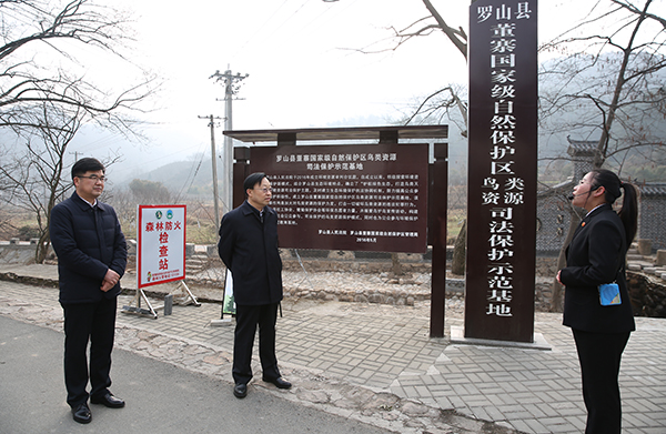 王韶华副院长考察了罗山县法院环境资源审判司法保护基地罗山县董寨国家级自然保护区,听取了罗山县法院建立司法保护基地,加强鸟类保护和生态环境修复的情况汇报。座谈会上,信阳中院、罗山法院汇报了开展环境资源审判工作情况,并就进一步加强淮河流域生态环境保护提出了意见和建议。