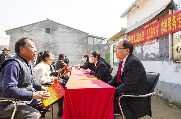 表彰活动结束后,省法院帮扶工作组的同志又马上投入到“学雷锋”志愿服务活动中。刑一庭、刑二庭、民一庭、民二庭和行政庭的法官干警挂起条幅,设置咨询台,就地开展普法宣传。他们向群众发放法律宣传材料,对前来咨询的村民热情接待,认真解答群众提出的各种法律问题,为他们答疑解惑,排忧解难。在会场另一角,省法院机关党委的同志认真开展爱国卫生运动宣传活动,他们向过往的群众发放宣传资料,与村民亲切交流,向他们宣传开展爱国卫生运动的重要性,鼓励和倡导大家积极参与,共创美好生活家园。