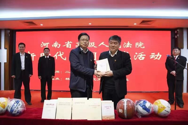陈兆法一行首先来到林州市新时代文明实践中心参观学习,陈主任代表省法院向中心赠送了党史类、法律类图书和一批体育器材,并就进一步做好文明实践活动同林州市委宣传部领导和中心负责人进行了深入交流。