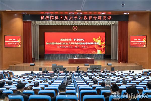 近日,省法院党组书记、院长胡道才以“回望来路,不忘初心,做中国特色社会主义司法制度的忠实践行者”为题,为省法院机关和直属单位党员干警讲授党史学习教育专题党课。