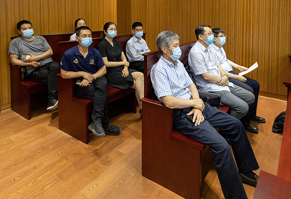 省政协委员冯军义、郑州大学知识产权学院杨红军教授、河南大学图书馆馆长娄丙录教授、郑书前教授、河南财经政法大学张洋教授、省知识产权局涂先明处长、睿信知识产权代理公司总经理胡云飞等知识产权理论、实务界专家旁听庭审。民三庭庭长司晓森向专家学者及旁听人员介绍了省法院“邀请群众旁听庭审”活动开展情况,大家对省法院开展“邀请群众旁听庭审”活动表示充分肯定,一致认为开展“邀请群众旁听庭审”活动是全面落实司法公开、主动接受群众监督的扎实举措,是传播法治理念、促进司法公正、提升司法公信的有效路径。
