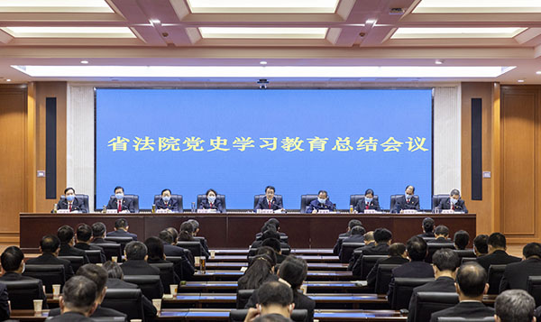 会议指出,在全党开展党史学习教育,是以习近平同志为核心的党中央立足百年党史新起点、着眼开创事业发展新局面作出的重大战略决策。一年来,省法院坚持以习近平新时代中国特色社会主义思想为指导,认真贯彻落实中央及省委决策部署,把党史学习教育作为一项重大政治任务,在省委党史学习教育第三巡回指导组的严督实导下,坚持学史明理、学史增信、学史崇德、学史力行,突出学党史、悟思想、办实事、开新局,广大党员干警经受了一次全面深刻的政治教育、思想淬炼和精神洗礼。