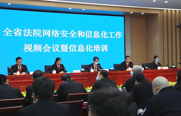 胡道才院长指出,当前,信息化对政治、经济、社会、文化、人的发展、意识形态等多个方面产生深远影响,网络安全和信息化工作面临新形势、新挑战。“智慧法院”的内涵随着信息技术发展,不断丰富。面对“创造更高水平的数字正义”的更高要求,面对人民群众对新时代智慧法院的更多期待,面对越来越繁重的审判执行任务,面对全方位智能化管理的更高标准,都需要进一步深化智慧法院建设。近年来,全省法院顺应时事之变,加快推进智慧审判、智慧执行、智慧服务、智慧管理建设,推动司法审判质量变革、效率变革、动力变革,实现了司法模式的转型升级和全面发展。但是,还存在信息化理念树立不牢、各地法院应用水平参差不齐、利用信息化提升工作成效的现代化水平不高,司法大数据挖掘应用力度不够等问题。