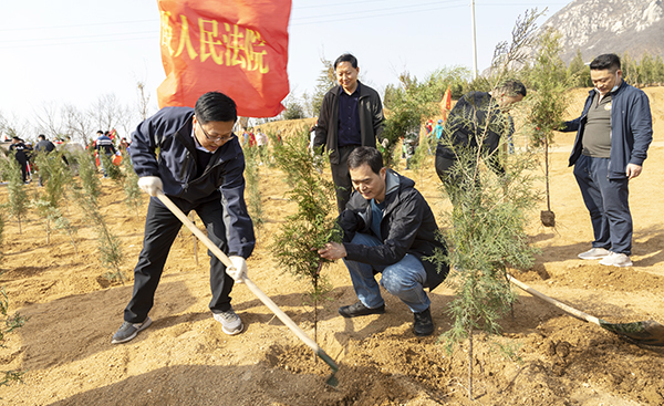 春染大地,生机勃发。为贯彻习近平生态文明思想,践行“绿水青山就是金山银山”理念,3月10日,省法院党组成员、政治部主任、机关党委书记陈兆法带领20名志愿者赴登封市陈家门义务植树基地开展植树活动。