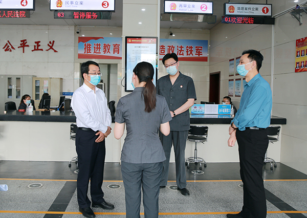 近日,省法院党组书记、院长胡道才到郑州市金水区法院、高新区法院,就立案诉服、信访工作、1-4月份审执质效、年度重点工作落实情况等开展调研。