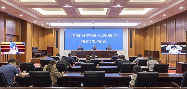 6月7日上午,河南省高级人民法院召开新闻发布会。会上,省法院党组成员、副院长郭保振通报了近年来全省法院整治民间借贷领域虚假诉讼工作开展情况,省法院民五庭庭长史昶伟介绍6起典型案例的基本情况及警示意义。全国人大代表程芳,省人大代表宋肃远应邀在开封、商丘通过视频形式出席发布会,省人大代表张志华应邀现场出席发布会。