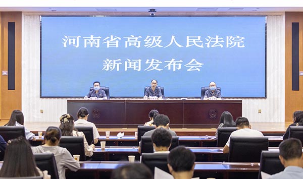 6月24日上午,河南省高级人民法院召开全省法院“6.26国际禁毒日”新闻发布会。会上,省法院党组副书记、常务副院长郭保振通报了全省法院2021年以来禁毒工作的总体情况,省法院刑三庭庭长袁小刚介绍6起典型案例的基本情况及警示意义。省人大代表赵俊海、翟玉霞应邀现场出席发布会。